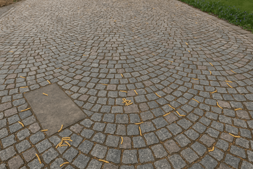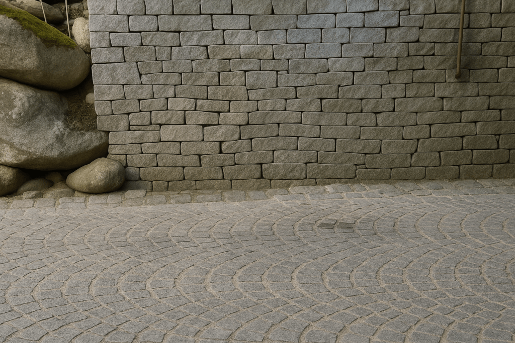 Pokládka kamenných kociek a stavby kamenných múrikov